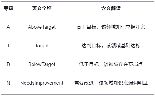 二、成绩等级:4级评定,3A需三大领域均“高于目标”