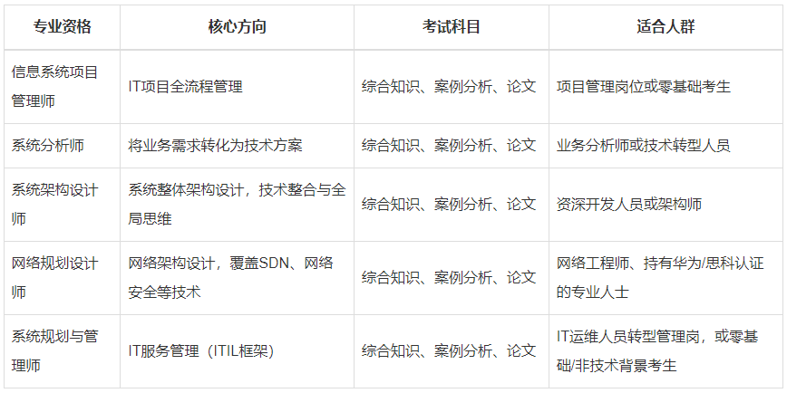 计算机软考高级的考试科目数量是固定的,都需要考3个科目,具体为《综合知识》、《案例分析》和《论文》三门,但不同专业方向的考察侧重点有所不同。