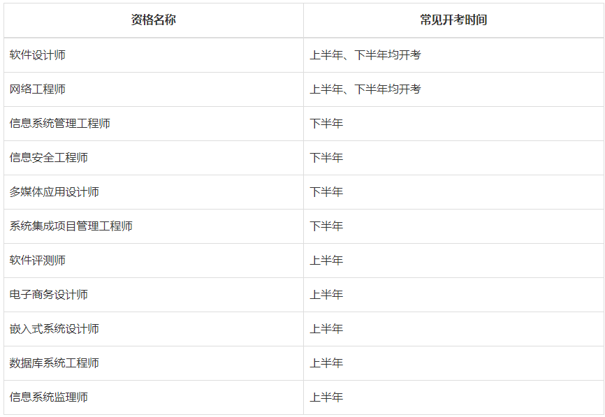 软考中级包含多个专业资格,各资格在上下半年的安排会有所不同。